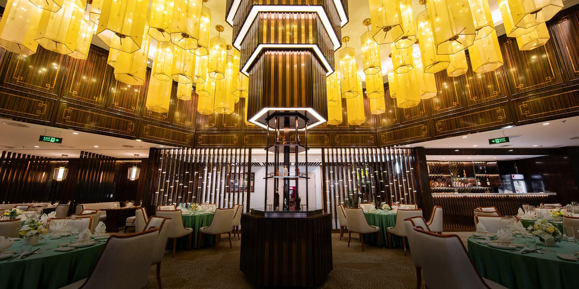 大厅以翠绿色为主要颜色,既豪华又亲切。用餐区有一个开放的空间,可摆放6-9人的桌子,给与亲人,朋友和同事聚会带来有趣的体验。此外,“鸳鸯区”得到舒适而精致地设计,让情侣和朋友享受美食,共同分享快乐的时光
